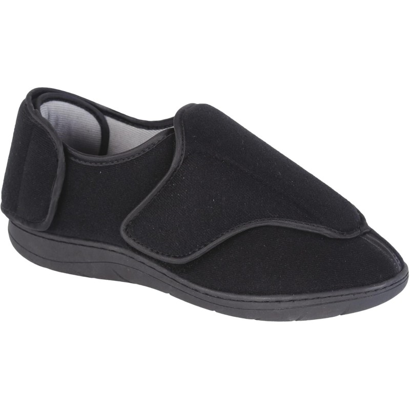Calzature fisiologiche – Apertura totale – Paio Tessuto morbido, retropiede regolabile, apertura anteriore, totalmente apribile con chiusura a velcro.