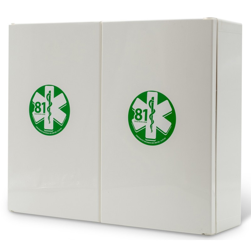 Armadietto realizzato in RC, colore bianco, 2 ante, 2 ripiani interni.