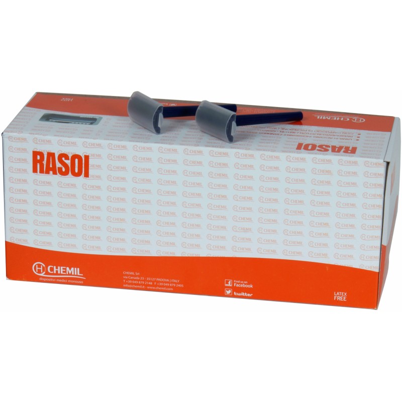 Rasoio monouso tricotomia in confezione da 100 pz. REPERTORIO DISPOSITIVI MEDICI Ministero della Salute nr. 2242824/R classificazione CND V0199