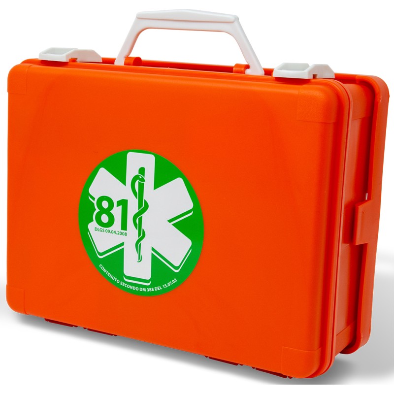 Valigetta realizzata in polipropilene antiurto, colore arancio, supporto per attacco a parete, maniglia per trasporto, chiusura con 2 clip rotanti.
