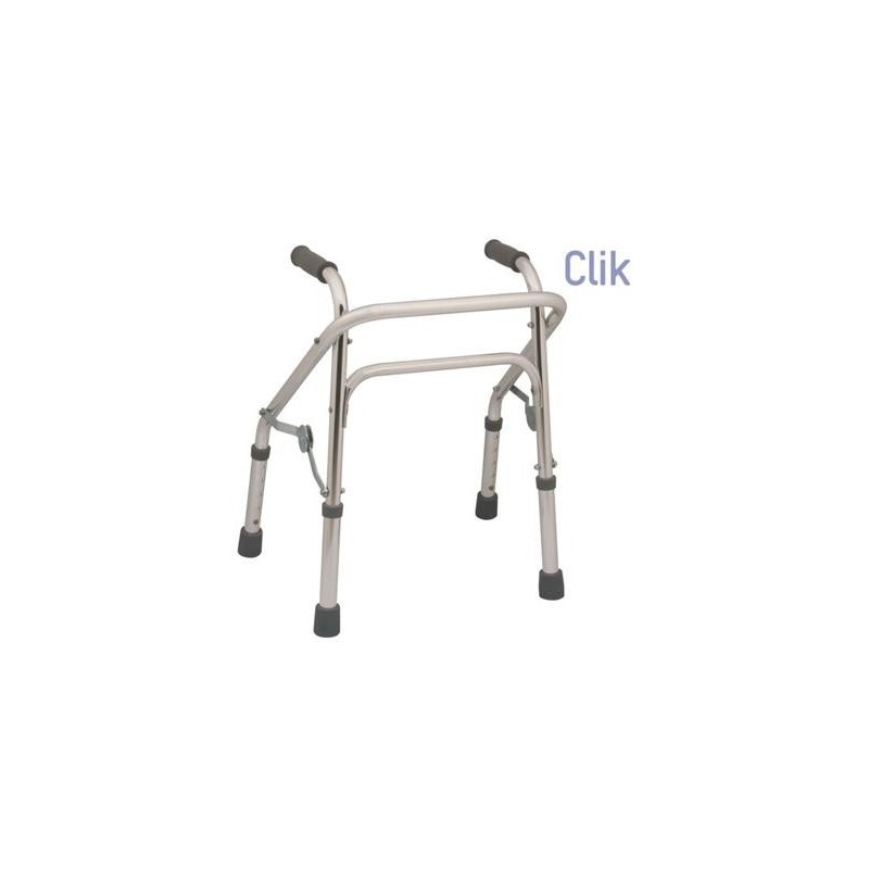 Deambulatore costruito in alluminio anodizzato. Manopole imbottite, puntali in gomma antiscivolo.