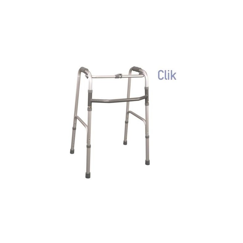 Deambulatori pieghevoli costruiti in alluminio anodizzato leggero con manopole imbottite, puntali in gomma antiscivolo.