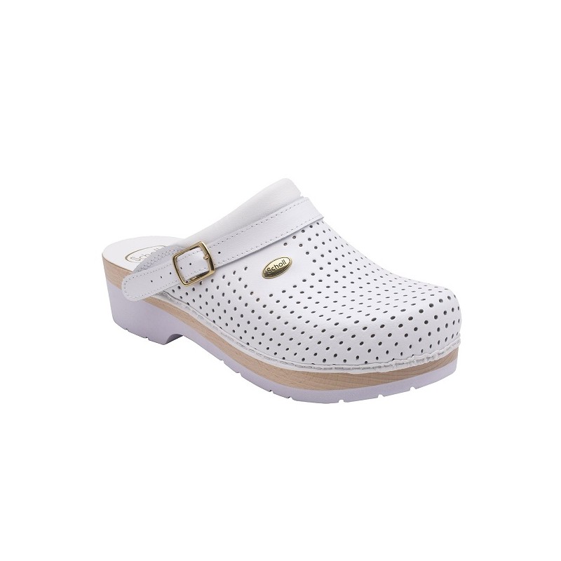 Clog Supercomfort è lo storico clog Scholl, caratterizzato da un plantare anatomico in legno di faggio con una calzata ampia. La tomaia con cinturino è realizzata interamente in pelle traforata. Scholl Clog Supercomfort è indicato a personale medico, sanitario e a tutti i professionisti che trascorrono tutta la giornata in piedi. Clog Supercomfort è un dispositivo di protezione indiviguale di classe I, Altezza tacco: 25MM, Colore: Bianco, Fitting: g, Genere: Donna, Materiale fodera: tessuto, Materiale soletto: legno, Materiale suola: PU,Tomaia: PU