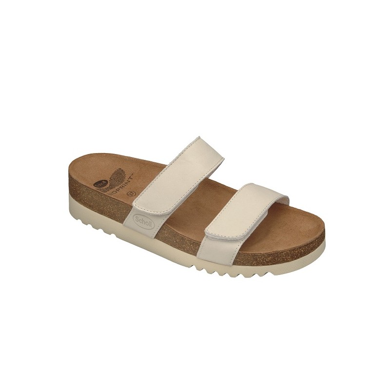 Lusaka, sandalo senza cinturino con tecnologia Scholl Bioprint®, è dotato del caratteristico plantare in sughero natuale e gomma ergonomicamente disegnato per mantenere il piede nella giusta posizione. Un modello casual e funzionale, con tomaia con doppia fascia in pelle e chiusure in velcro per abbracciare in modo delicato il piede e offrire un'ottima adattabilità.