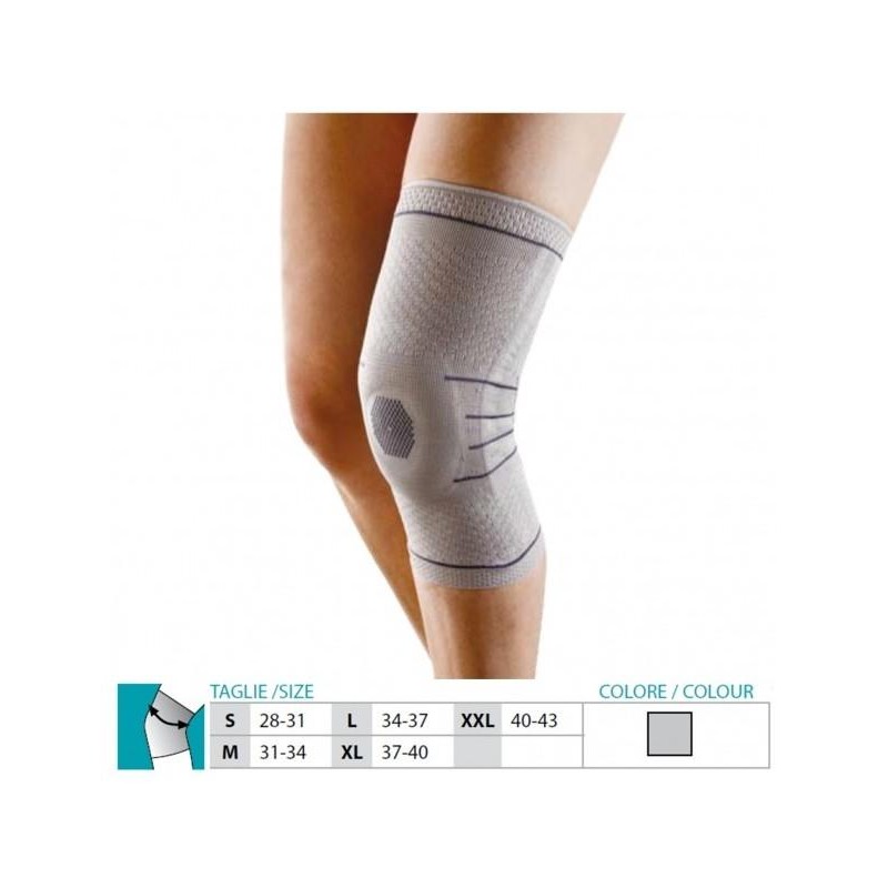 Ginocchiera ORIONE in tessuto elastico, con particolare struttura in maglia elastica che permette una perfetta vestibilità ed elevata traspirazione. Inserto in silicone integrato che permette una costante pressione infrapatellare per la stabilizzazione della rotula.
