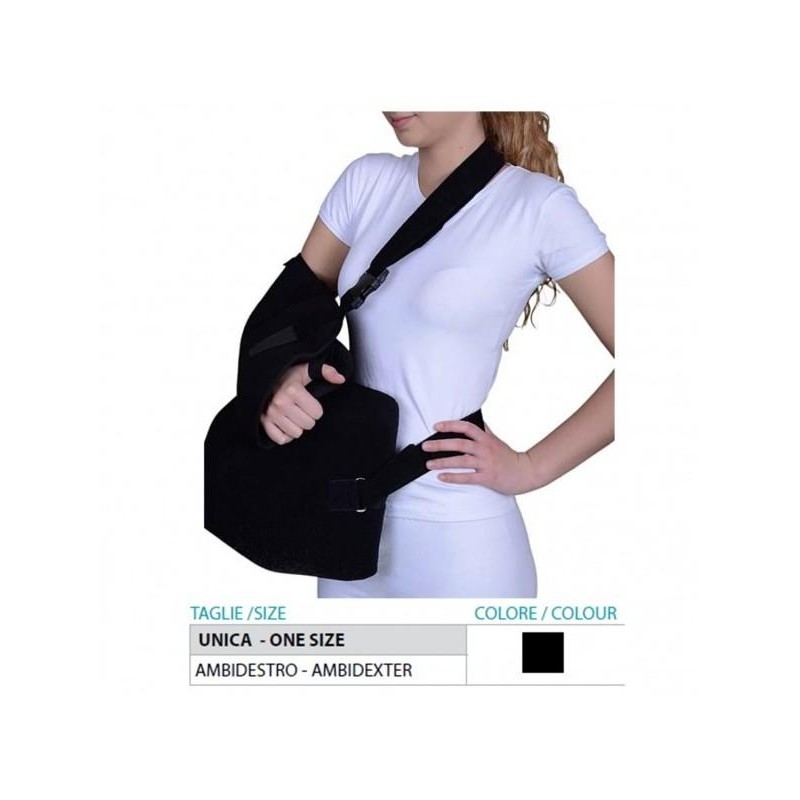 Cuscino in gommapiuma ad alta intensità, ricoperto con confortevole tessuto aggrappante dotato di cintura regolabile per garantire ottima vestibilità. Tasca reggibraccio regolabile con appoggio pollice incorporato. Comprensivo di extra cintura di bloccaggio del reggibraccio al cuscino.