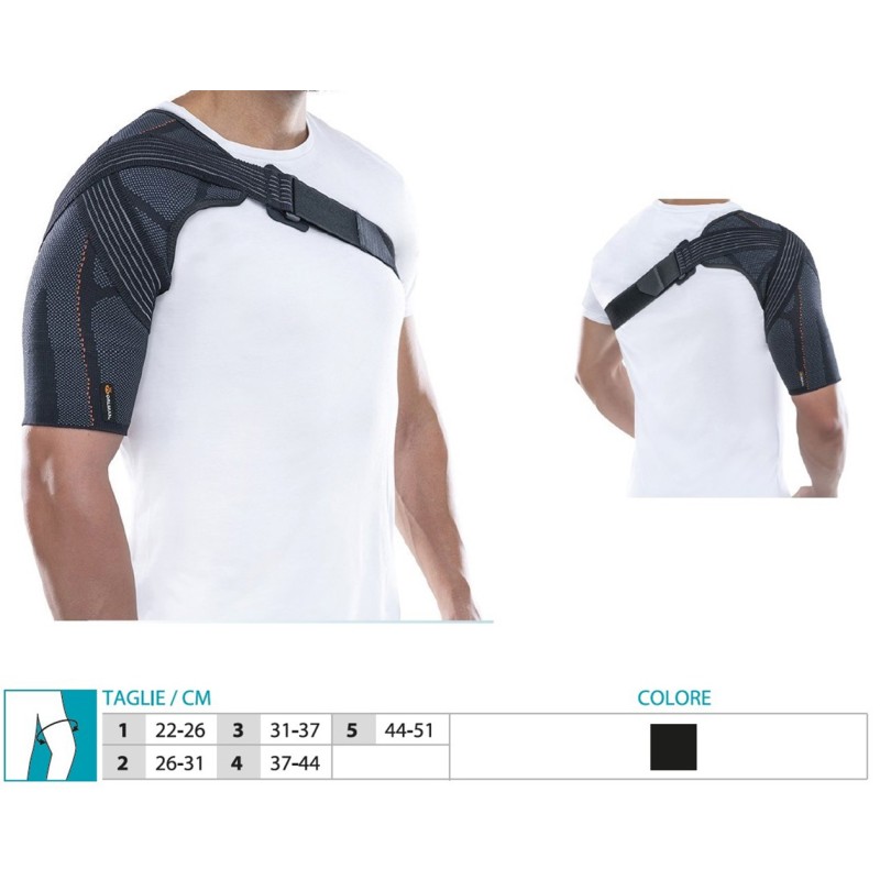 Il supporto per la spalla stabilizza limitando o bloccando la spalla. Effetto antigravitazionale che scarica l'articolazione, dissipando la tensione muscolare migliorando la sensibilità propriocettiva. Realizzato in tessuto elastico tridimensionale traspirante senza cuciture che si adatta alla morfologia della spalla. Incorpora 2 cinghie (anteriore e posteriore) stabilizzanti che controllano la posizione della testa dell'omero e la cavità glenoidea.