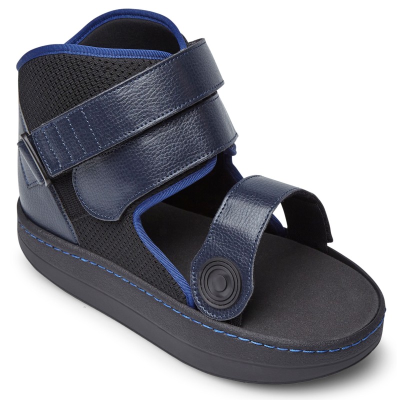Ortesi podalica riabilitativa, contrafforte termomodellabile, tomaia traspirante e lavabile.