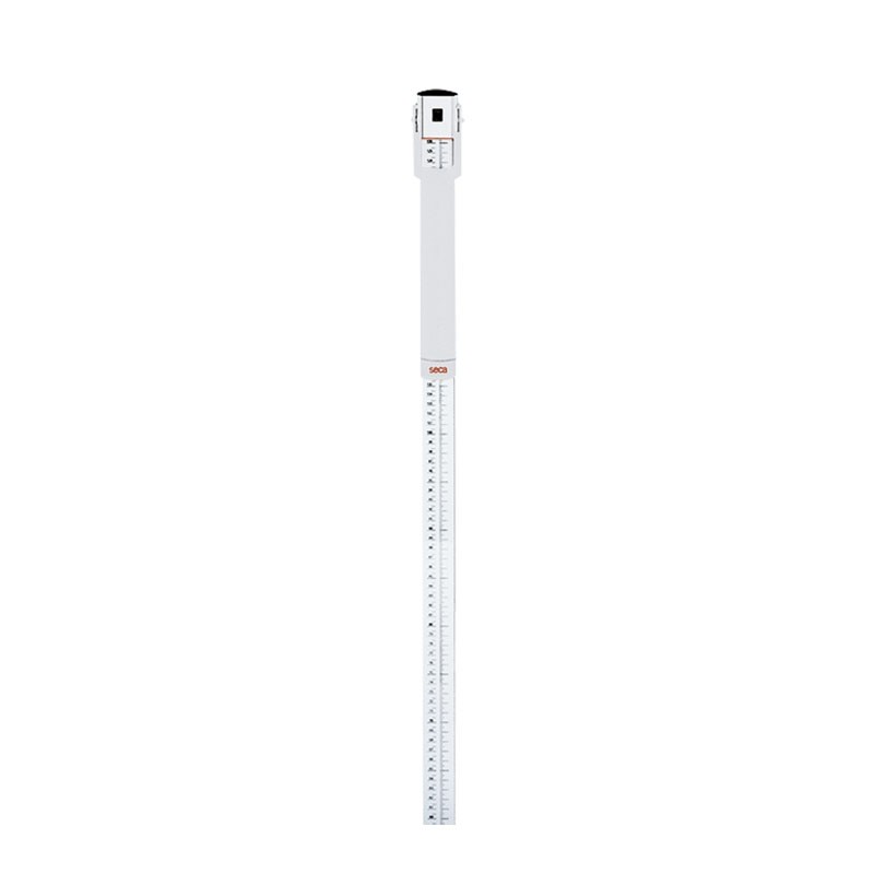 Altimetro telescopico ad asta. Realizzato in alluminio anodizzato è facilmente applicabile alle bilance a colonna seca. La misura dell'altezza può essere chiaramente letta allo stesso livello degli occhi, anche da pazienti di statura elevata.