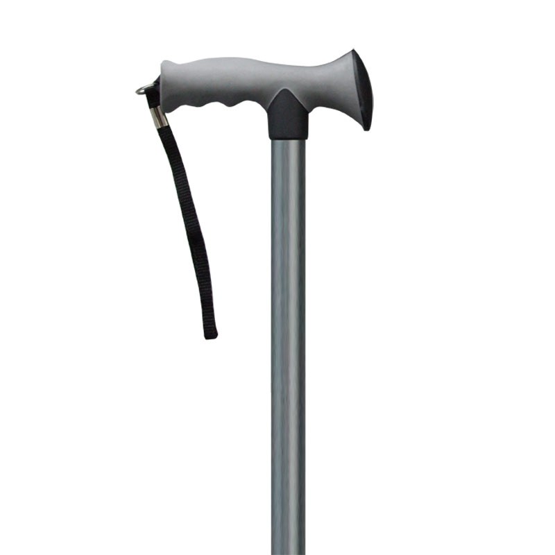 Bastone in alluminio con impugnatura a T in poliuretano morbido, con cinturino di sicurezza da infilare al polso. Facilmente regolabile, mediante spine di bloccaggio, su 10 differenti livelli di altezza. Puntale in gomma. Disponibile in tre varianti di colore. Altezza da 75 a 98 cm Portata 113 kg