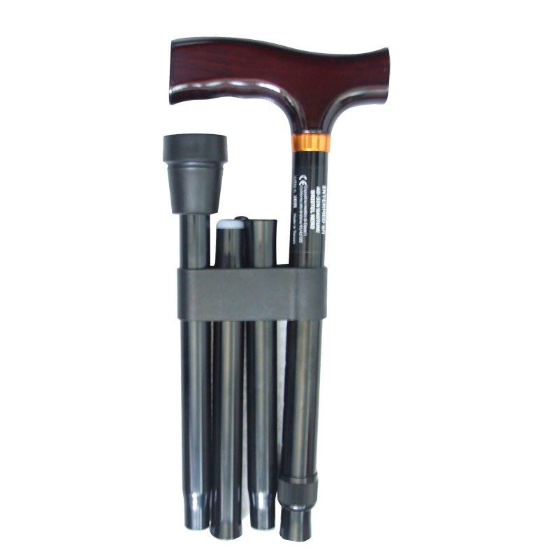 Bastone in alluminio, struttura pieghevole con impugnatura a T in legno.