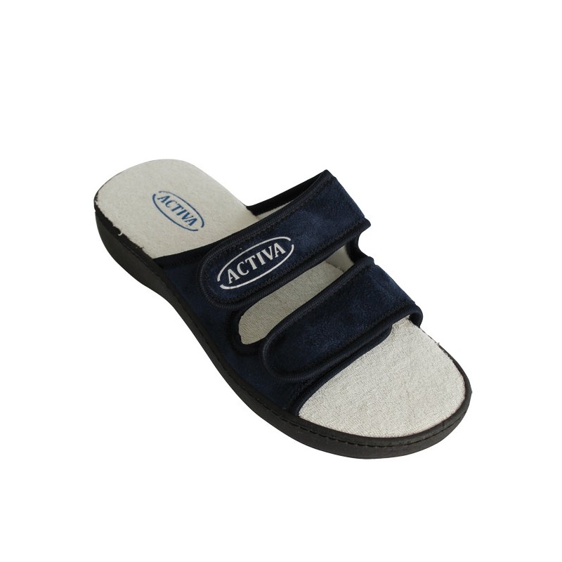 Ciabatta fisiologica in colore blu, unisex con tomaia in microfibra traspirante.