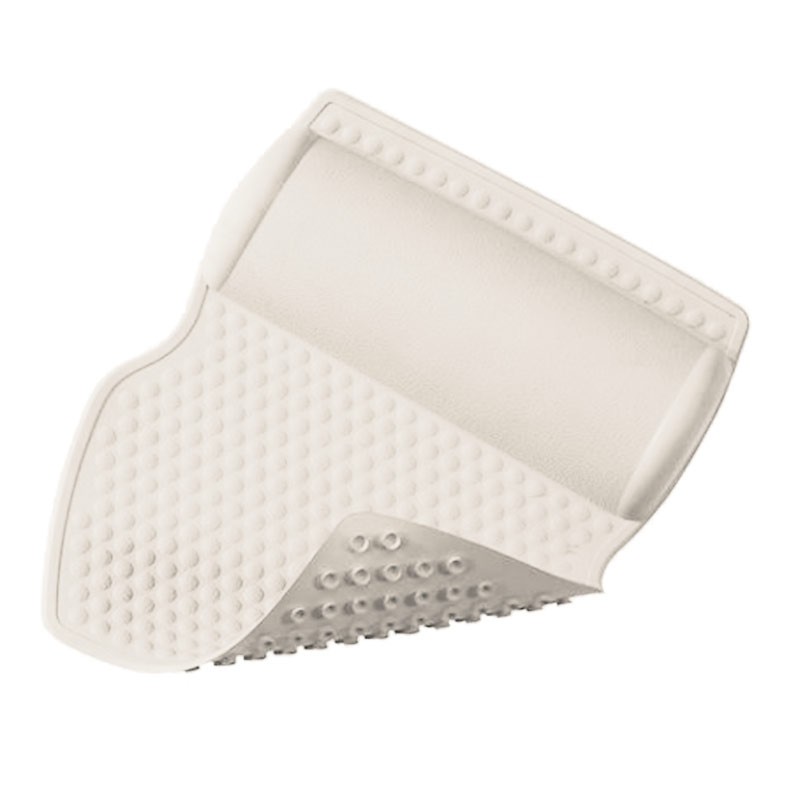 Poggiaschiena per vasca realizzato in gomma naturale dotato di appoggio per il capo. Dimensioni 32 x 38 cm. Colore bianco avorio.