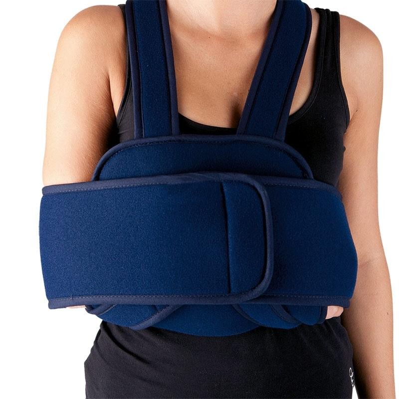 Tutore immobilizzatore braccio spalla a bretella Immobilizzatore braccio spalla in cotone per supporto di spalla, braccio, polso e mano. Posizionabile grazie a due bretelle che aiutano a distribuire il peso del braccio. Gli spallaci a Y imbottiti sono regolabili in base alle esigenze degli utenti.