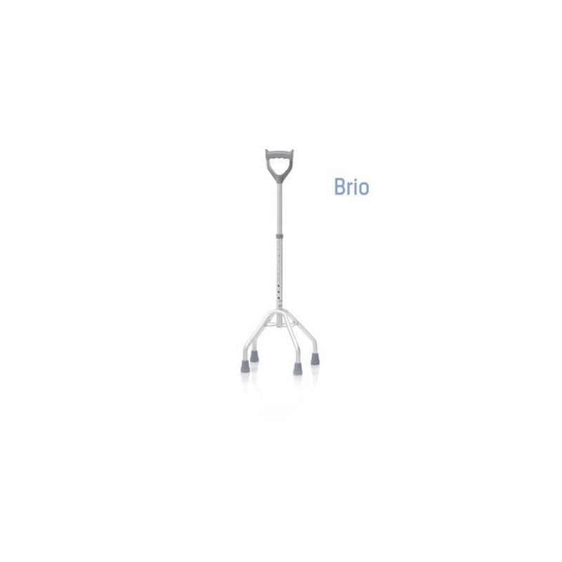 Quadripode base larga con manico chiuso, impugnatura anatomica. Interamente realizzato in alluminio anodizzato. Puntali antiscivolo in gomma morbida.