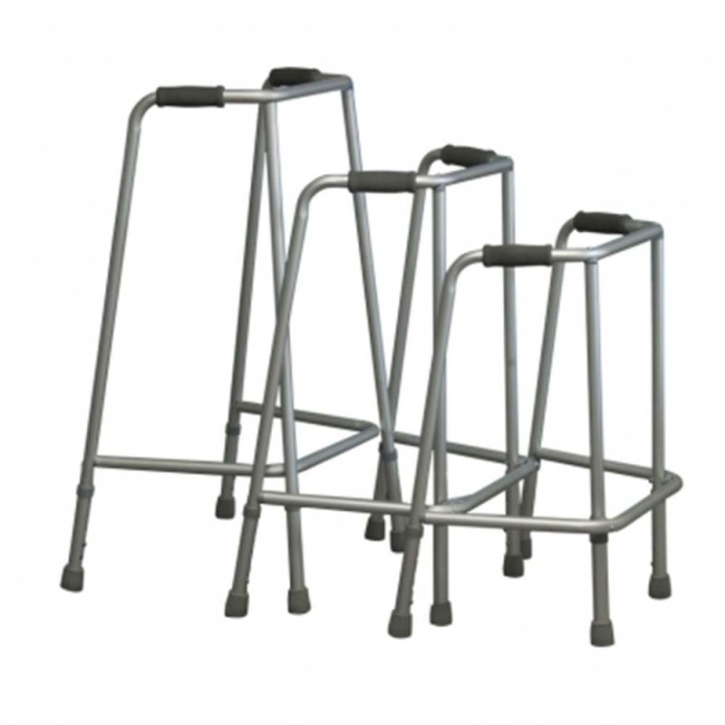Deambulatore fisso con struttura in alluminio,regolabile in altezza con quattro punti di appoggioal terreno.