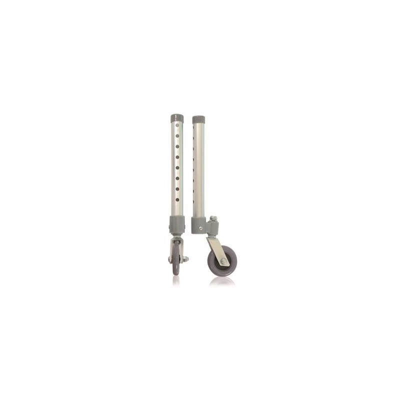 Coppia di ruote piroettanti per deambulatori con 8 fori.
