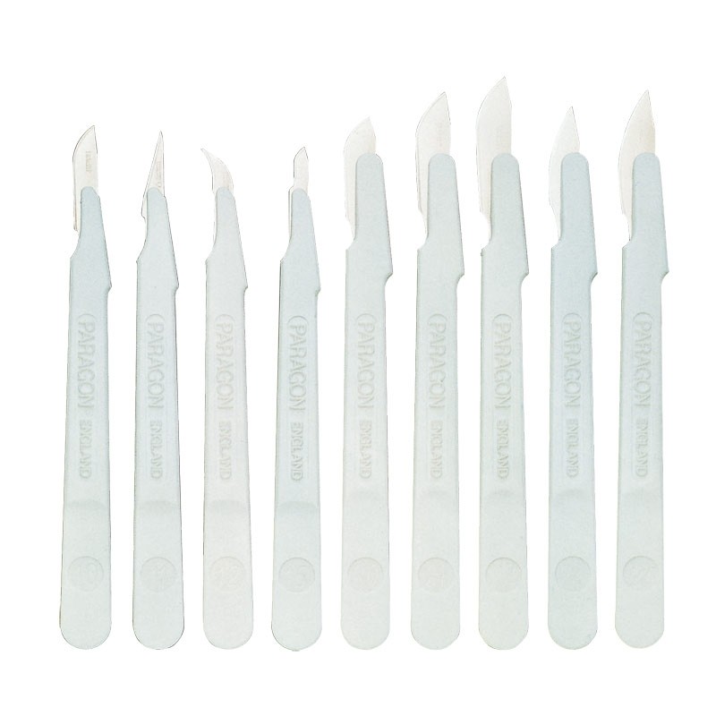 Bisturi con lame in acciaio Inox conforme agli standard ISO 7153 e ISO 7740, spessore della lama 0,40 mm. Manico in plastica fissato saldamente alla lama, con proteggilama ricollocabile in politene da 0,6 mm. Sterilizzati a raggi gamma. In confezione singola sterile con busta per uso medicale. Scatola da 10 pezzi.