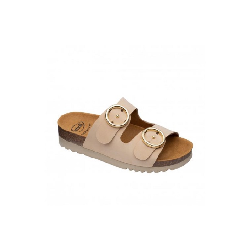 La maxi fibbia circolare dorata aggiunge un tocco frizzante alla linea Malibù, donando movimento e stile ad ogni passo per esaltare lo stile e il comfort degli outfit estivi.La tomaia in nabuk dai toni pastello propone una nuova interpretazione della scarpa neutra essenziale del guardaroba, che renderà questi sandali protagonisti delle giornate estive, dal mattino alla sera.I sandali Malibù possono infatti essere indossati ininterrottamente per tutta la giornata grazie al comfort tipico di Scholl, assicurato dalla regolazione del cinturino che avvolge delicatamente il piede e dalla suola Scholl Bioprint® in sughero naturale e gomma, studiata per mantenere la piede piede nella giusta posizione, rendendo la scarpa flessibile e leggera.