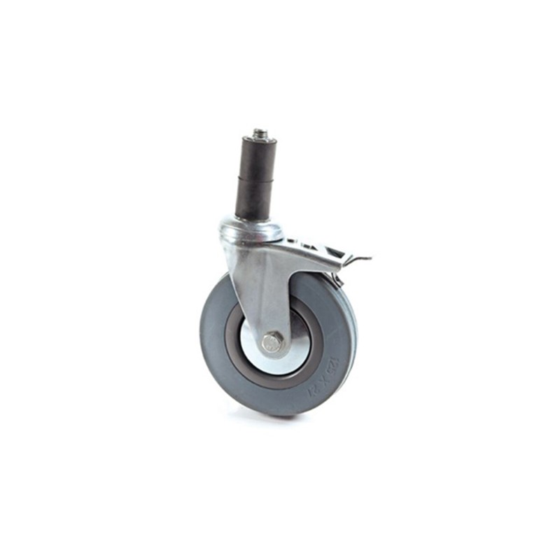 il diametro del pernio e' di 27mm x 62 mm ed e' composto da un anima in metallo e di un rivestimento gommoso che si dilata durante la fase di inserimento il diametro della ruota è di Ø125 mm