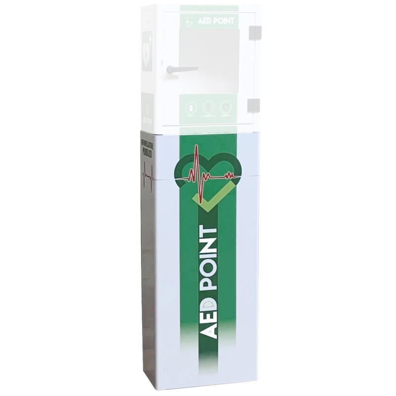 Teca da esterno ed interno per defibrillatore in lamiera di acciaio al carbonio elettrozincata; verniciatura poliestere a polvere, elevata resistenza agli agenti atmosferici, bordi arrotondati 1 porta a battente con chiusura magnetica e guarnizione. Dotato di vetro in plexiglas. Due robuste cerniere. Fori per applicazione a parete o totem. Vari modelli DEF028 (vedere scheda tecnica). Supporto a pavimento (PIA028) per la teca DEF028 adatto per applicazioni interne ed esterne. Completo di fori di fissaggio a pavimento e coperchio posteriore per il passaggio dei cavi. Modelli DEF028: Teca DEF028A: Teca allarmata con timer e luce crepuscolare interna DEF028TA: Teca allarmata con illuminazione crepuscolare interna e con termoregolatore e ventilatore per l’estrazione dell’aria. Colore Bianco RAL9010 ca DEF028 : 420x210x420 mm ( PxLxH) PIA028 : 420x210x1000 mm ( PxLxH) Peso: DEF028 : 7 kg DEF028A : 7,5 kg DEF028 TA : 9 kg PIA042 : 11 kg