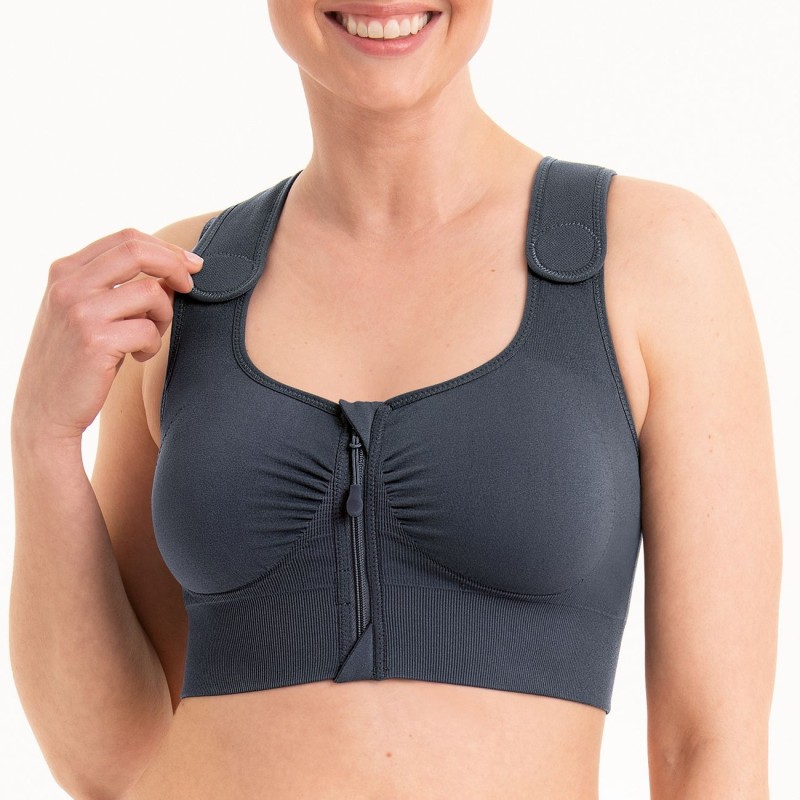 Schiena vogatore dal taglio delicato per un sollievo ottimale, con zone traspiranti integrate e fascia di compressione con tecnologia seamless. Marca: Anita Modello: 4108X Colore: Antracite Composizione: 66% Poliammide, 29% Elastan, 5% Poliestere