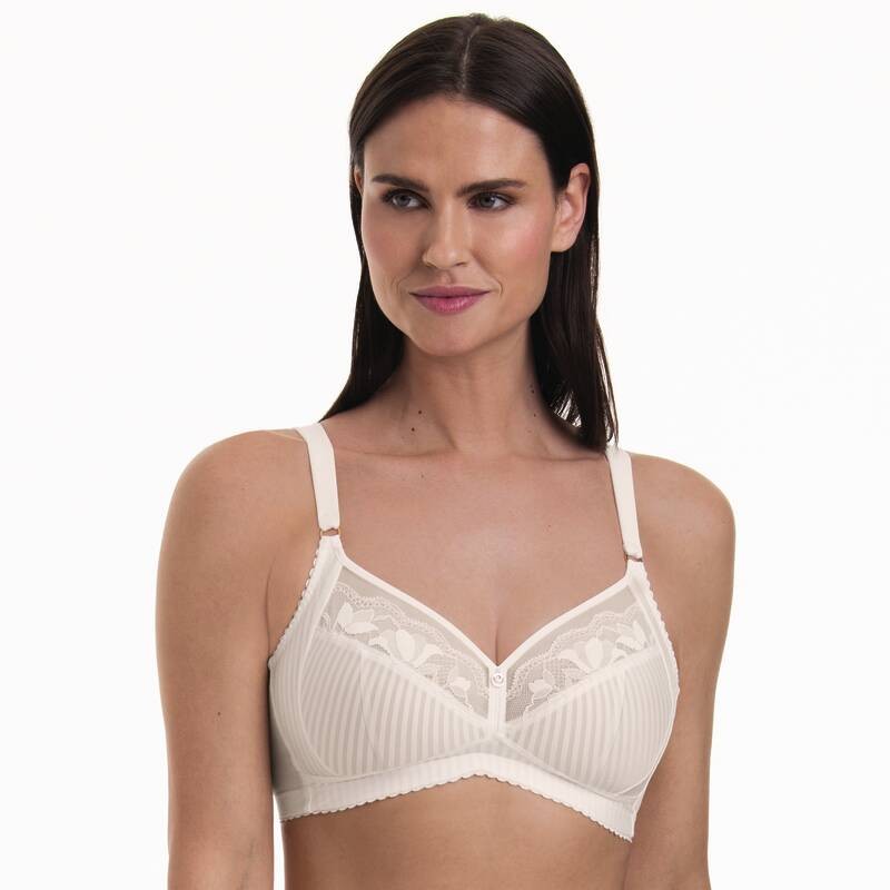 Anelli decorativi color oro nel ponticello e nell’allacciatura delle spalline impreziosiscono il look raffinato, mentre la parte inferiore della coppa divisa e la bordatura laterale garantiscono una perfetta vestibilità e un piacevole sostegno. Materiale Allover rigato Foderato Pizzo elastico su tulle trasparente Coppe Coppe divise in tre parti Spalline Largh.spall.cresce con tg/cup Sviluppo in esclusiva x Anita Leggermente elastico Dorso Inserto doppiato in tg.grandi Rinforzi laterali in tg.grandi