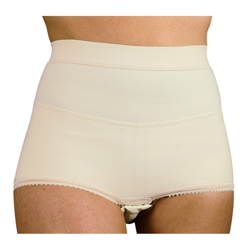 Slip erniario femminile per prevenire rilassamenti o ernie. Lo speciale materiale poliestensivo assicura una forte compressione delle zone interessate, il cavallo è aperto e regolato da due apposite file di gancetti. Questo prodotto è indicato per: