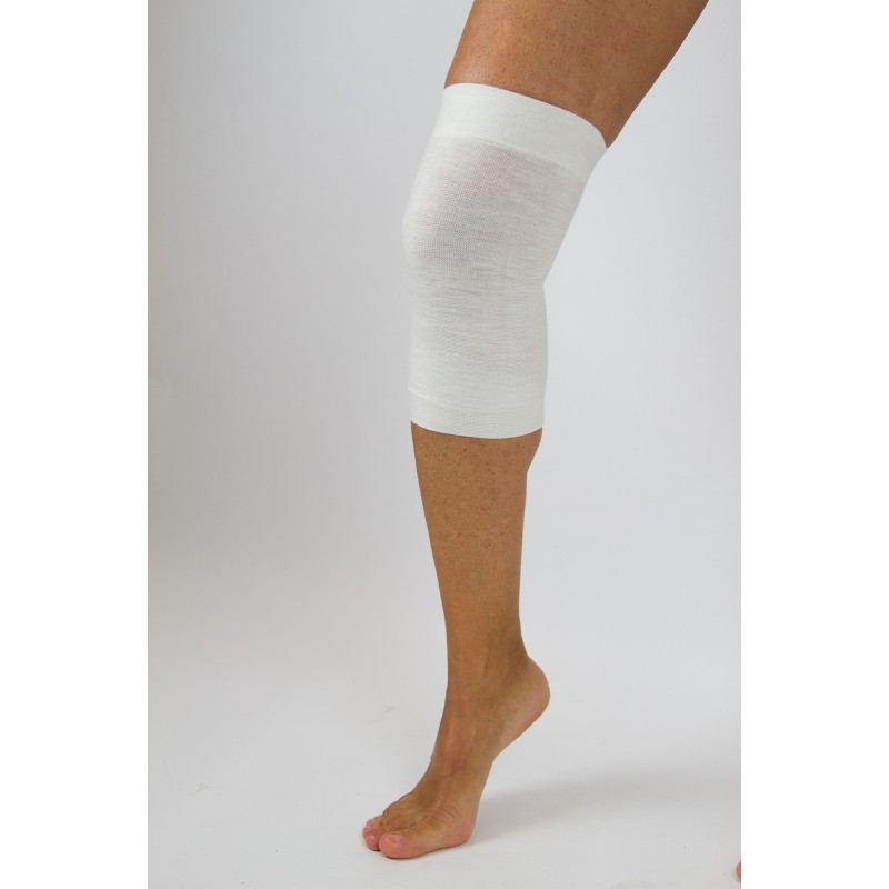 Ginocchiera in angora, con effetto termico per la protezione dal freddo e conformazione tubolare con compressione elastica, leggermente poliestensiva.