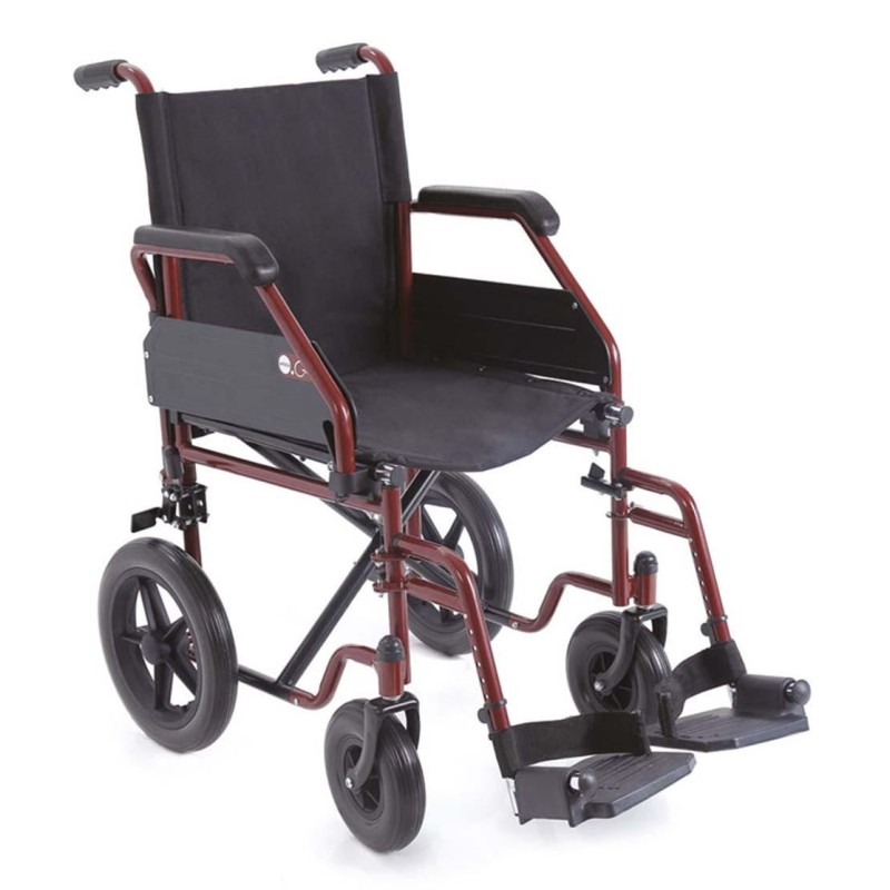 Sedia a Rotelle Carrozzina Pieghevole di transito in Acciaio verniciato Serie Go 43 cm Rossa Art. CP500R-43