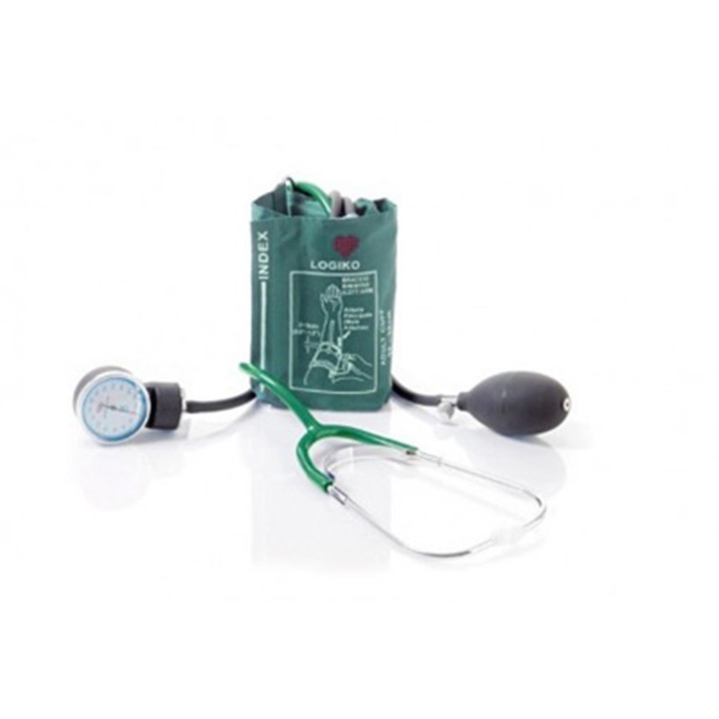 Sfigmomanometro ad aneroide Misuratore di Pressione cassa standard con fonendoscopio valvola a vite Latex Free verde Art. DM353