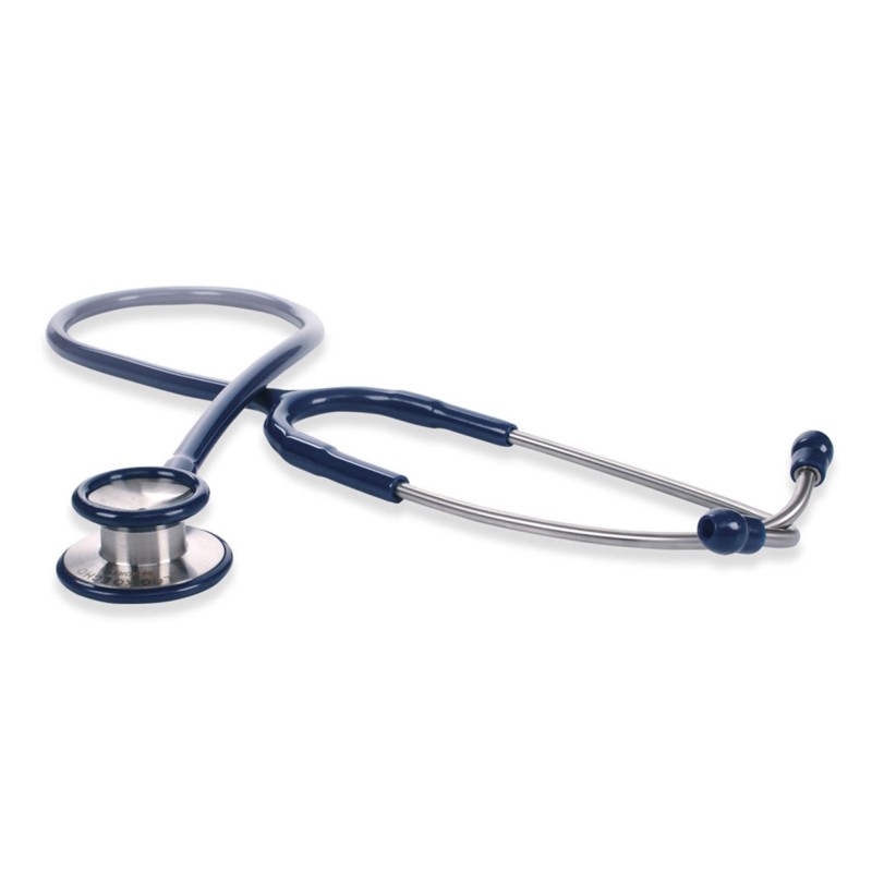 Archetto biauricolare con molla assemblata all’interno del tubo. Tubo colorato ad Y in PVC Ø 5 mm lunghezza 60 cm. Anello antifreddo su entrambi i lati. Olive morbide a vite. Colore Blu