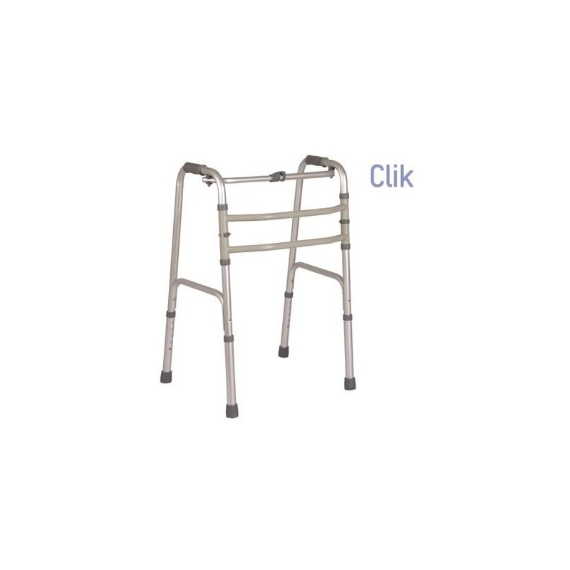 Deambulatore pieghevole doppia funzione: fissa e oscillante. Costruito in alluminio anodizzato, utilizzabile sia fisso che alternato. Nell’utilizzo alternato ciascun lato della struttura si muove alternativamente in modo da favorire la deambulazione. Manopole imbottite, puntali in gomma antiscivolo.