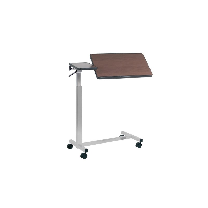 Tavolino a due piani realizzati con la struttura in acciaio e piano laminato. Bordo antiurto in polietilene. Regolabile in altezza ed inclinazione. Sollevamento automatico. Colori disponibili: Marrone